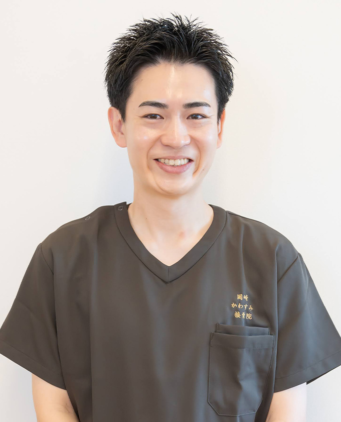 | 略歴 | みよし市出身 米田柔整専門学校を卒業 豊田市の接骨院で6年勤務、同時に機能訓練指導員としてデイサービスにも勤務 |
