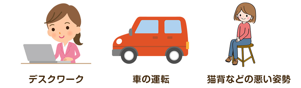長時間のデスクワークやスマートフォンの使用により猫背になり姿勢が悪くなることがあります。