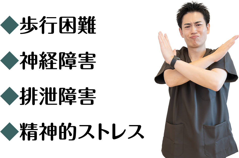 坐骨神経痛は早期に適切な治療を行うことで症状の悪化を防ぎ、生活の質を向上させることができます。身体のゆがみを正常な状態へ戻し、坐骨神経痛を根本から改善する背骨・骨盤矯正を行っています。さらに日常のケアやメンテナンスで再発の予防も行っていきます。